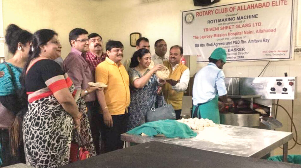 The hospital is supported by RC Allahabad Elite, RID 3120. It serves around 450 people a day, offering general medicine, surgical services, ophthalmology, dermatology, physiotherapy, occupational therapy and provision of footwear and assistive devices. They also have a 150-bed in-patient facility named Snehalaya, a residence for leprosy patients who have nowhere to go.