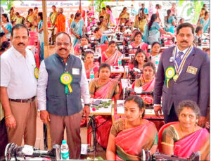 Tailoring machines worth ₹12 lakh were given to 105 women who had undergone training under Project Velicham (brightness) by RC Vellore Golden City, RID 3231, in Munjurpet village. DG Rajanbabu was the chief guest, while PDG J K N Palani issued certificates to the beneficiaries who had completed the course. DGE V Suresh and DGND T Sivakumar were also present.