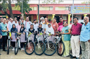 PDG Raje Sangramsingh Bhonsle presented the bicycles to the girls and appreciated the club for taking up such impactful school projects in the rural areas of Hinganghat in Wardha district of Maharashtra.