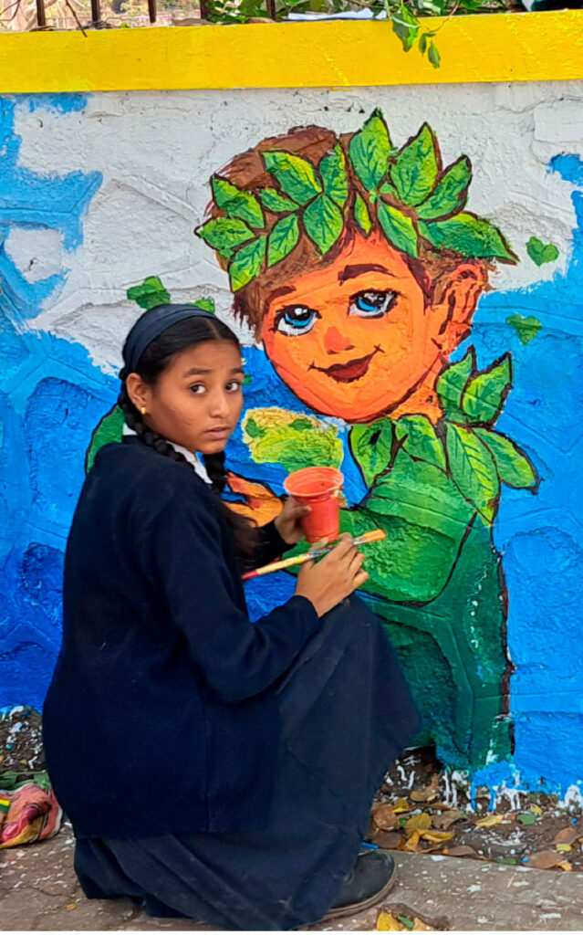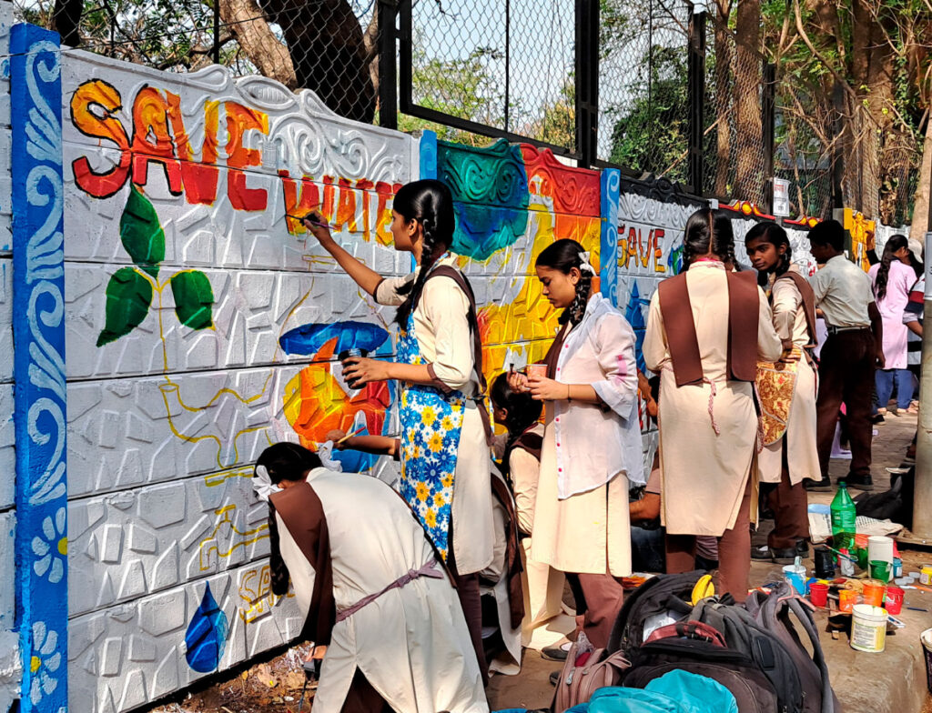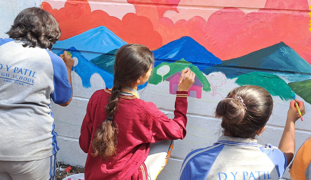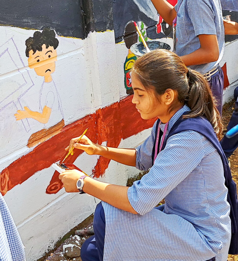 During this project, 10 students from each participating school, along with their art teachers, were assigned a specific concept to focus on. They were given 10 days to develop their ideas on paper, and after a review and minor modifications, they were permitted to bring their designs to life on the walls. The commercial artist Jadhav, who specialises in wall painting, educated the students on how to prepare different shades from five basic colours, and after they had got the concept of the colour mixing technique, the students set about the task of painting their designs on the walls.