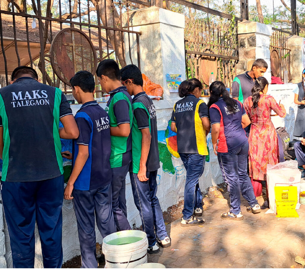 Working in collaboration with the Talegaon Municipal Council, the club identified key environmental themes for the wall paintings, which included air, soil and water pollution, urban waste management, and the importance of growing trees.