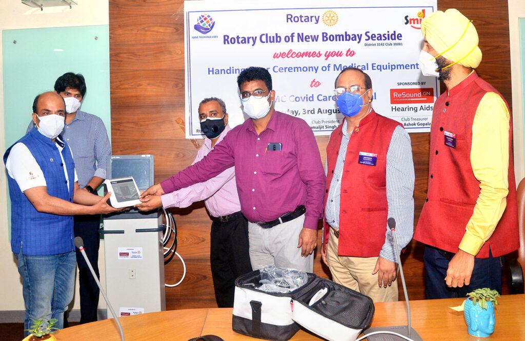 Medical equipment worth ₹20 lakh were donated by RC New Bombay Seaside, RID 3142, to the Navi Mumbai Municipal Corporation for treating patients at its Covid care centre in Vashi, Mumbai. This project was done with support from GN Hearing India which had donated for this cause under its CSR funding. The critical care equipment were handed over to the corporation commissioner Abhijit Bangar by DG Mayuresh Warke and Sunil Vinzanekar, MD of GN Hearing India.