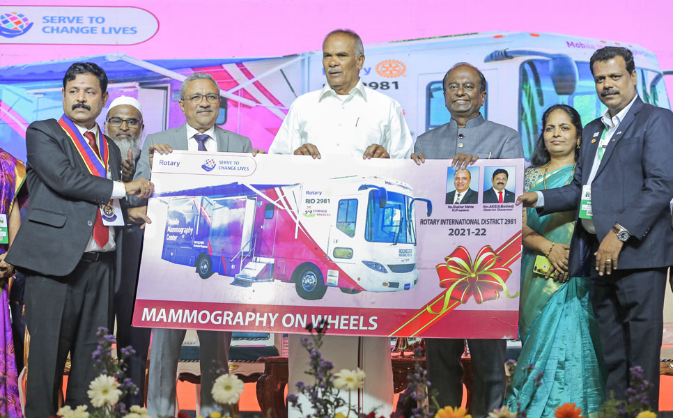 Rotary District 2981, led by DG S Balaji, celebrated its district conference in Chennai for three days recently. To commemorate the event the district launched three humanitarian services — a mammography bus worth ₹1.75 crore that will be driven across Tamil Nadu and Puducherry to help early detection of breast cancer; Project Orange worth ₹2.25 crore to set up 16 vision centres across Tamil Nadu; and three ambulances to serve patients. The ambulances were given to three Rotary clubs chosen through a lucky draw at the conference and the clubs will use the vehicles to help underprivileged patients. The projects were funded through global grants and sizeable contribution from Rotarians.