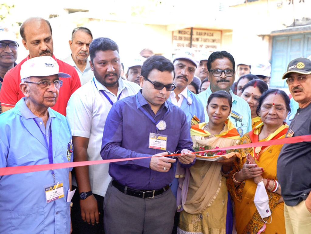 Fast forward to the medical mission in February 2023 in Baripada. Our team of doctors and volunteers took the flights and were received by DG Pravudutta Subudhi and other leaders of the district. At the hotel, our team was received by the seniormost PDG D N Padhi and his wife Deepa. Past governors of the district met for reception and dinner. Next morning we took the Innovas for Baripada and after a wholesome vegetarian lunch we reached our destination.