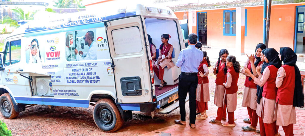 RC Payyanur, RID 3204, launched ‘Vision on Wheels,’ a mobile ophthalmic clinic supported by RC Metro Kuala Lumpur, RID 3300, through a global grant, to provide eyecare services to students and underserved communities in Kasaragod and Kannur districts in north Kerala.