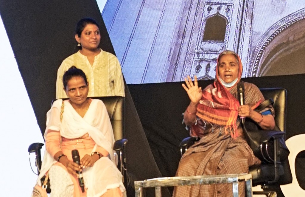 An interaction with 65-year-old Tai and her daughter-in-law Jothi highlighted how they have benefitted from RILM’s adult literacy programme. Both of them work as domestic help. “I have never in my lifetime sat and had a decent conversation, let alone, sit here on a stage and talking with so many of you learned people. My legs are shivering but I feel so good, and I enjoy this confidence only because of you ‘Rotarywalon’ who are helping me get educated,” said Tai. “I am happy to attend classes with my three bahus and do the homework sitting along with my grandchildren.” Jothi vowed “to educate both my son and daughter so that they have a bright future. And I will work hard and do whatever it takes to provide them good education.”