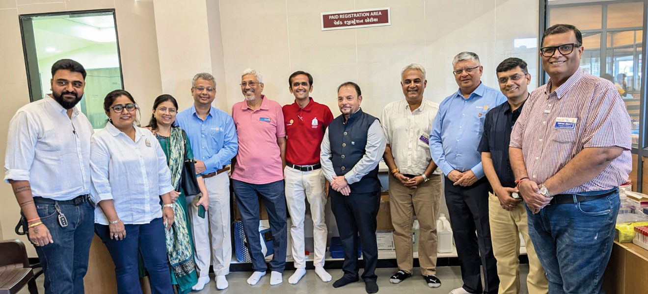 Club members including PDG Tushar Shah (third from R) at the SVNM Rotary Pathology Laboratory.