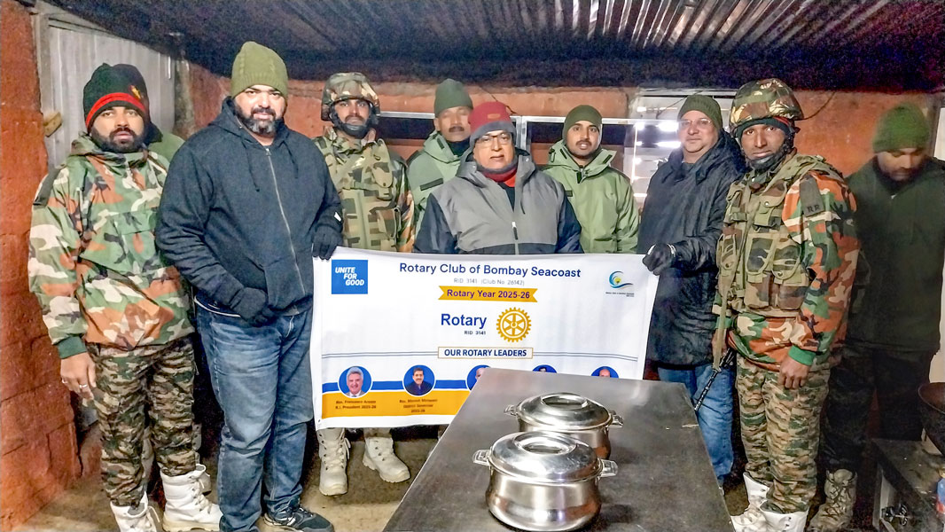 RC Bombay Seacoast, RID 3141, donated a fully equipped kitchen and dining hall for the Indian Army personnel stationed at the Machal Valley, Kashmir. The facility, contributed by club member Harish Shani, enables soldiers serving in extreme sub-zero conditions to access hot, nutritious meals. The jawans have named the facility ‘Mom’s Kitchen’