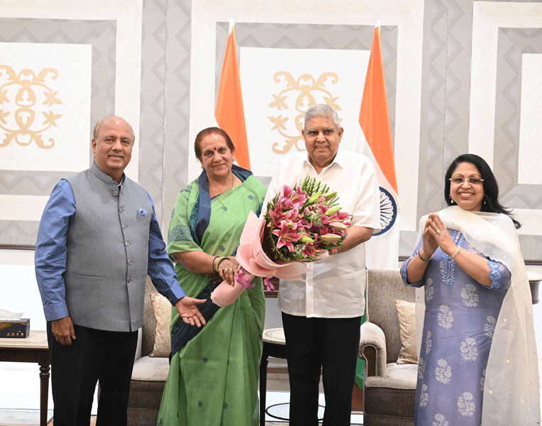 PRIP Shekhar Mehta and Rashi met the Vice President of India Jagdeep Dhankar and his wife Sudesh in New Delhi. Over a 45-minute meeting, Mehta highlighted the initiatives of the India Literacy Mission and apprised the Vice President about a possible Rotary convention in India.