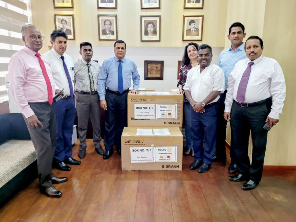 The medicines were handed over to Dr W K Wickramasinghe, deputy director general of health services, by RC Colombo West, RID 3220. “Thus, we embarked on our very first community project for the new Rotary year,” said Kapila Mohotti, club president. DGE Rajendram, community service director K P Nagarajana, Mohotti and Dr Ruwan Thushara Matiwalage, along with NHSL officials, thanked Rotary India for the timely shipment of essentials.