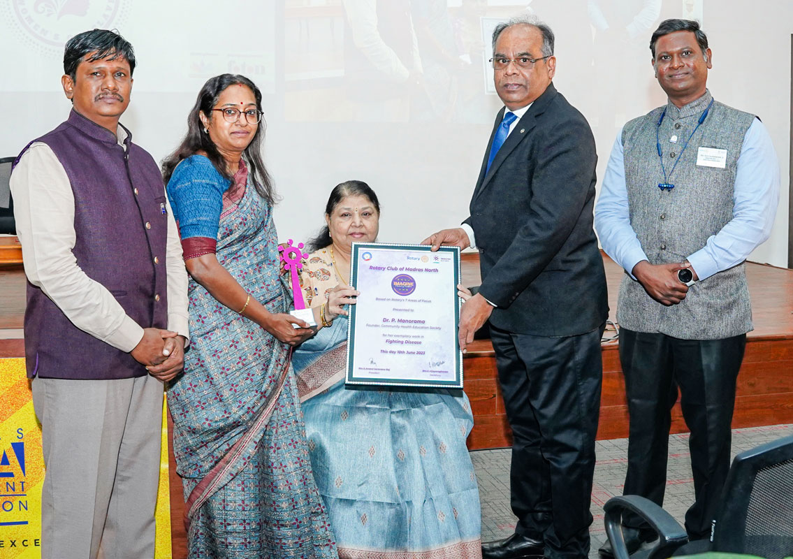 To honour the leadership of RI President Jennifer Jones, and celebrate her theme Imagine Rotary, RC Madras North, RID 3232, instituted the Imagine Award of ­Excellence for the Rotary year 2022–23. This award recognises women leaders who have made exceptional contributions in alignment with Rotary’s seven areas of focus.