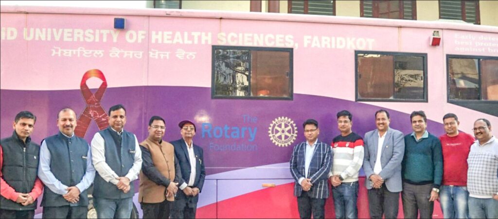 Under a global grant partnership with RC Taipei Tungteh Taiwan, RID 3522, and RC Delhi Rajdhani, RID 3011, RC Faridkot, RID 3090, handed over the Rotary Gunwati Bansal Memorial Cancer Detection Van worth $200,000 to the Baba Farid University of Health Sciences, Faridkot, in 2017–18. The project was then led by late PDG Vinod Bansal.