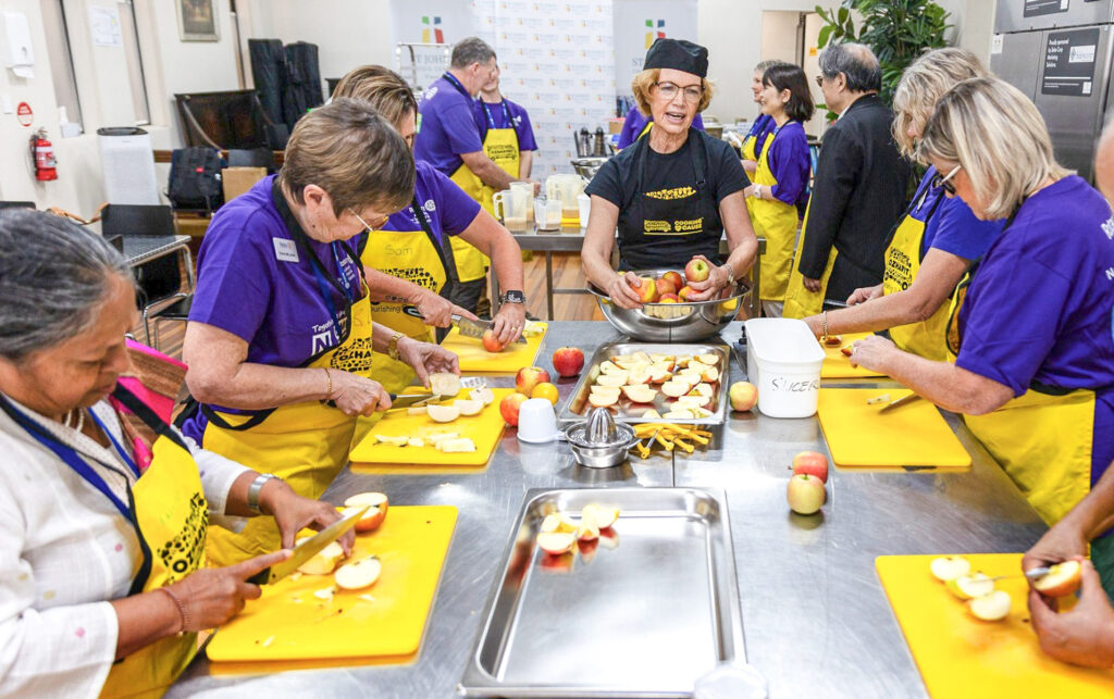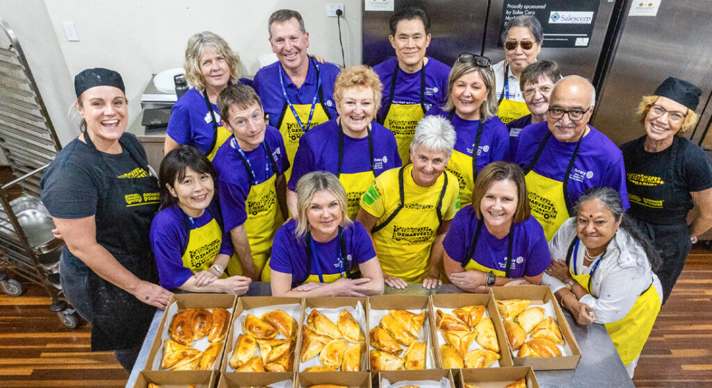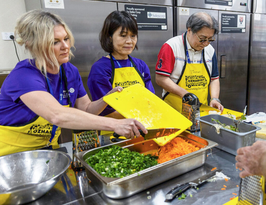 Cut across to May 2025, and a bunch of us, regional Rotary magazine editors from the Asia-Pacific region — Japan, Thailand, Taiwan, Australia and India — and the flagship Rotary magazine, senior leaders from the host magazine Rotary Down Under (RDU), including RDU chair PDG Kalma McLellan, its editorial chair PDG Liz Courtney and general manager Gay Kiddle, and a few passionate Rotarians, enthusiastically made our way to one of the OzHarvest kitchens run under its Cooking for a Cause programme.