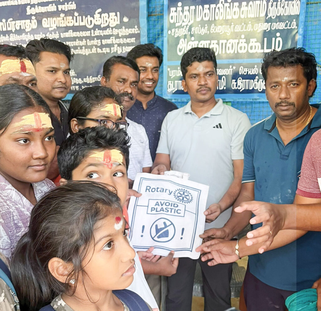 Each year, thousands of pilgrims visit the hill temple on Aadi Amavasya day. But they litter the pristine forest area with single-use plastic and other waste, thus polluting the land and endangering the lives of wild animals as they consume such non-biodegradable waste thrown casually by devotees. “While distributing cloth bags, Rotarians urged the devotees not to litter the hills, and also removed the plastic litter and other discarded stuff piled up on the path to the temple,” said Balamurugan, news coordinator of RID 3212. The district collector made a plea for protecting the environment, especially the forests and scenic hills, from pollution through plastic and other hazardous waste.
