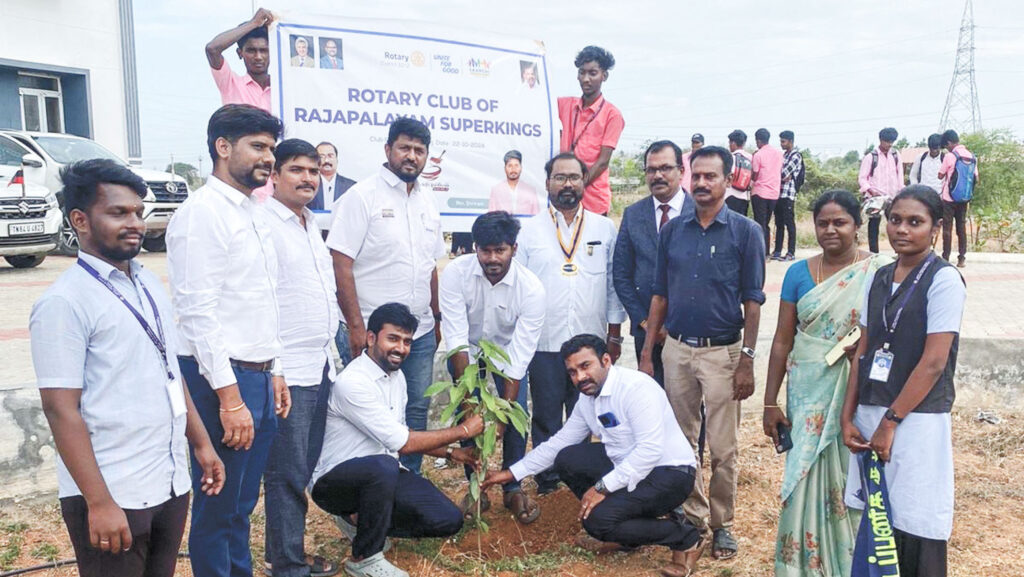 RID 3212 clubs have taken up diverse projects across the focus areas of Rotary, as directed by their DG Dhinesh Babu. RC Rajapalayam Super Kings have planted saplings at the Government Arts College with club president Karthikeyan and college principal Saravanan leading the greening mission.