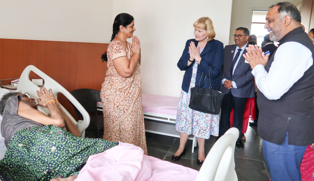 RIPN Stephanie Urchick, during her recent visit to India to participate in the Visakha Vista Rotary zone institute in Vizag, took time off to visit the Sparsh Hospice established by RC Banjara Hills, RID 3150, in Hyderabad. The hospice, which was initially set up with 12 beds in 2011 to provide palliative care to terminally-ill patients, was upgraded in Oct 2021 at a cost of ₹14 crore (Read https://wordpress-132319-5230970.cloudwaysapps.com/a-rotary-hospice-in-hyderabad-at-rs-14-crore/ )