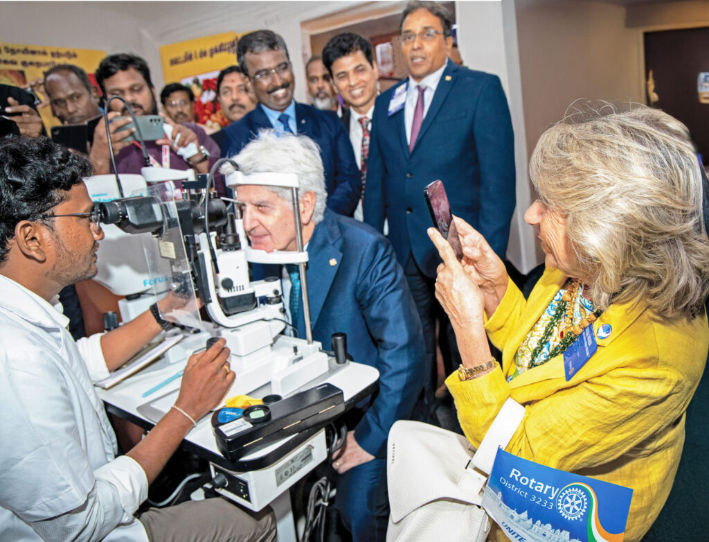with Rotary for the eradication of polio. “Because of the action taken by the TN government and the Rotarians of Tamil Nadu, we became the first state in India to eradicate polio. For this, the entire credit goes to Rotary. During the Covid pandemic too, Rotary’s work was truly outstanding in providing medical equipment, essential supplies and extending full support to the TN government. I have personal experience of working closely with Rotary during the pandemic, when we joined hands with TRF to provide masks, sanitation kits and other medical assistance.”