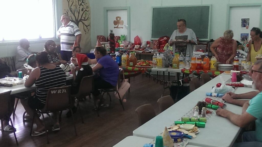 “Tables were set with Christmas decorations and the hall took on a festive air. Not only did local businesses chip in to help, so too did many families by way of very generous hampers.”