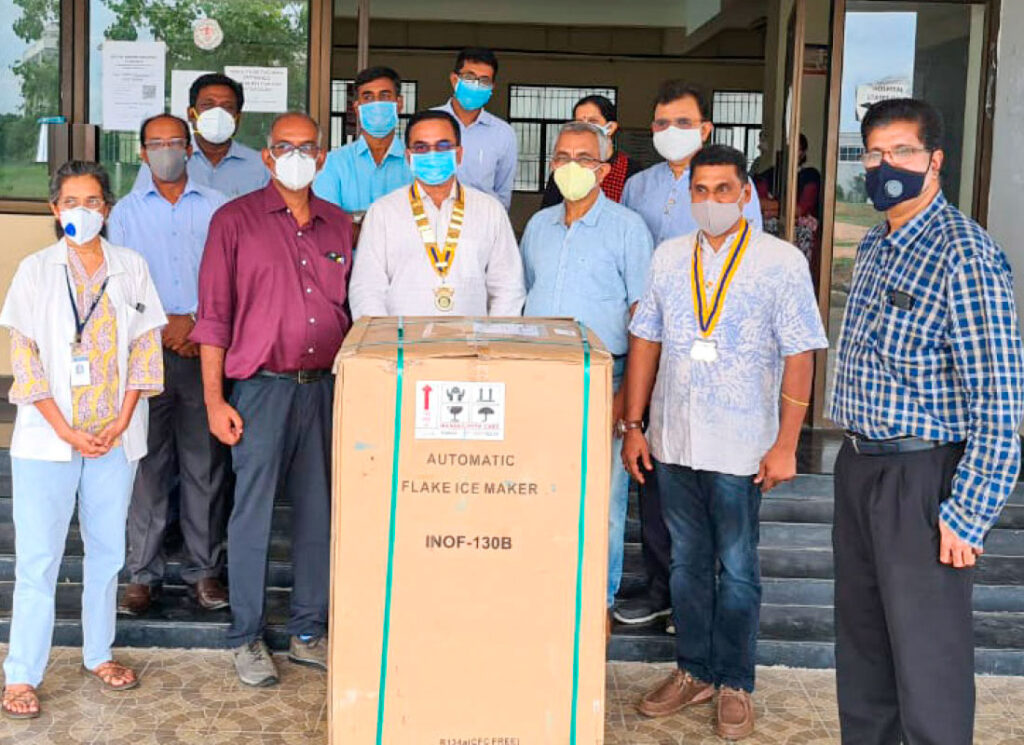 Samir Kamra, member of RC Pondicherry Port, RID 2981, sponsored a desktop computer worth `50,000 to the Covid ward at the General Hospital and a flake ice maker worth `2.5 lakh to the Indira Gandhi Medical College and Research Institute. Flake ice has a variety of medical and laboratory uses ranging from physiotherapy to instrument calibration and transportation of donated organs. “It will also help in enhancing Covid testing,” said Rajesh Candamourty, club secretary.