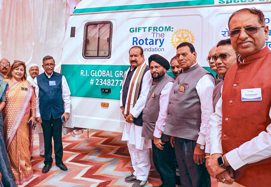 Chartered on Feb 19, 1974, RC Neemuch, RID 3040 (Madhya Pradesh), celebrated its golden jubilee where RI director Raju Subramanian dedicated an ophthalmology mobile clinic to Nethralaya, a local eyecare hospital, as part of Project Aapka Chashma Aapke Dwar (receive your spectacles at your doorstep). This global grant initiative, partnered with RC Memphis, RID 6800, and costing ₹41 lakh, will conduct eye screening camps and provide spectacles free of cost in remote rural regions of Madhya Pradesh.