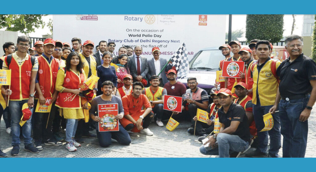 In Delhi, RI South Asia Office (RISAO) joined hands with RC Delhi Regency Next, RID 3011, to flag off Mission Indradhanush Message Car for creating awareness across the regions. India National PolioPlus Committee (INPPC) Chairman Deepak Kapur flagged off the car from RISAO office, in the presence of DG Suresh Bhasin and other Rotarians.