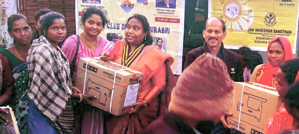 Around 1,250 women from Gathum village and its surrounding hamlets in Visakhapatnam district are currently receiving training in tailoring and embroidery through a three-month course under Project Rotary Shakti, an initiative of the Rotary Club of Vizag Surabhi, RID 3020.