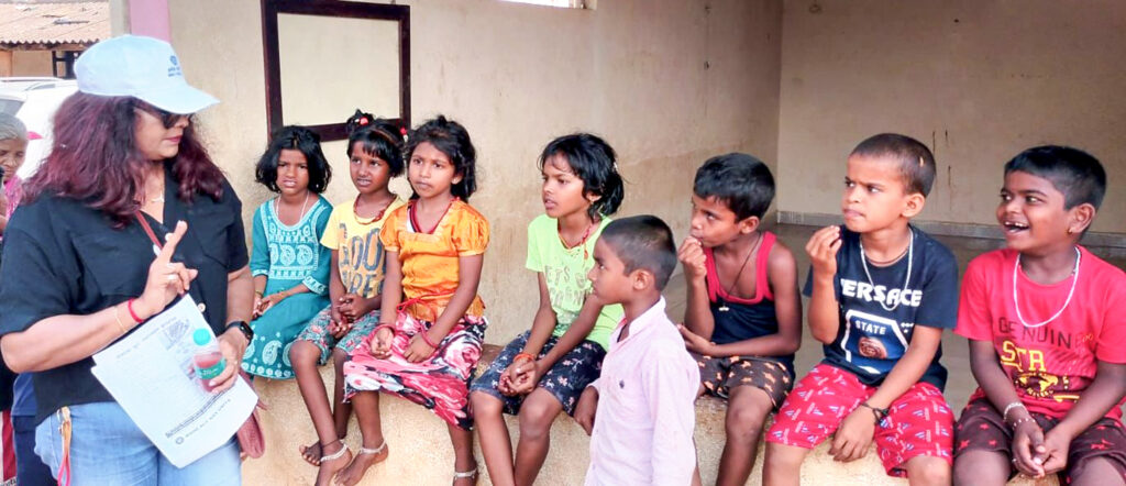 RC Manipal Hills’ IPP Suparna Shetty gives a pep talk to children on the need for a clean, hygienic environment to ward off crippling diseases.