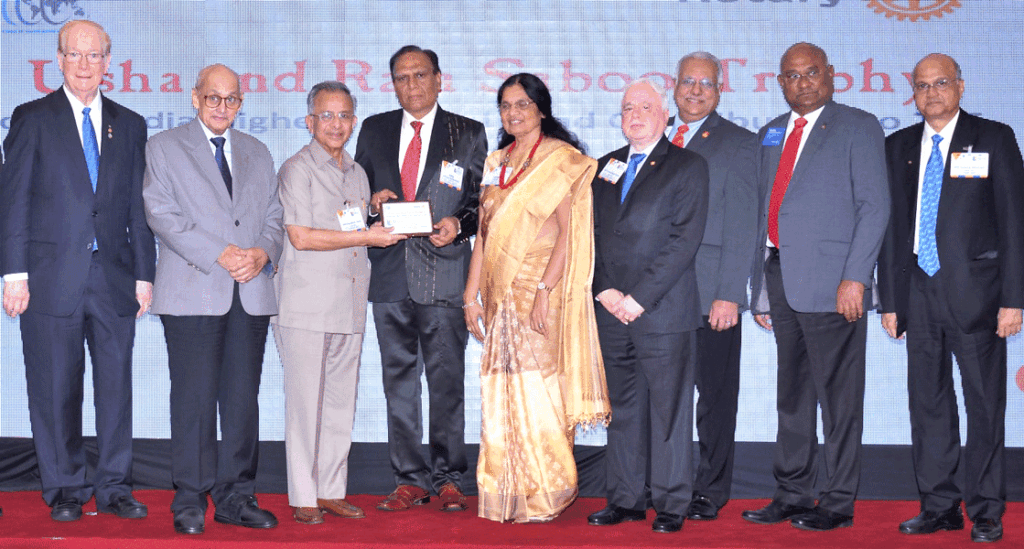 IPDG N Subramanian receives his award from PRIP Kalyan Banerjee and TRF Trustee Sushil Gupta in the presence of TRF Trustee Chair Paul Netzel, PRID Manoj Desai and RID C Basker.