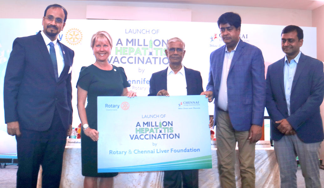 Jones launched ‘A million hepatitis vaccination’ drive which is jointly done by RID 3232 and the Chennai Liver Foundation (CLF). “Rotary has a good health infrastructure in place through its polio eradication efforts which will help us in the fight against hepatitis,” she noted. Rotary clubs will work closely with the community and the government to scale up the hepatitis vaccination drive, said DG Nandakumar. Giving details of the vaccination drive, Dr R P Shanmugam, gastroenterologist and founder, CLF, said “viral hepatitis is a silent killer — nine out of 10 patients don’t know about it — as the virus can sit in the liver without the knowledge of the patient for over 25 years. It manifests itself at the age of 45 or above and by that time 70 per cent of the liver is damaged and beyond recovery.”