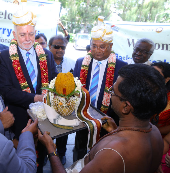 The drums and Nadaswaram played on as incoming presidents and Rotarians of D 3231, dressed in grey and white suits, with their spouses in pattu sarees, stood in the corridor of the hall to extend a traditional welcome to RIPE Barry Rassin and RI Director C Basker. This was Rassin’s “sixth PETS session in India and 74th PETS worldwide in six weeks but his enthusiasm makes me wonder if this is the first PETS he is addressing. Barry is here because he wants to boost your (president-elects) confidence and ensure that the Rotary year 2018–19 will be executed efficiently,” said Basker.