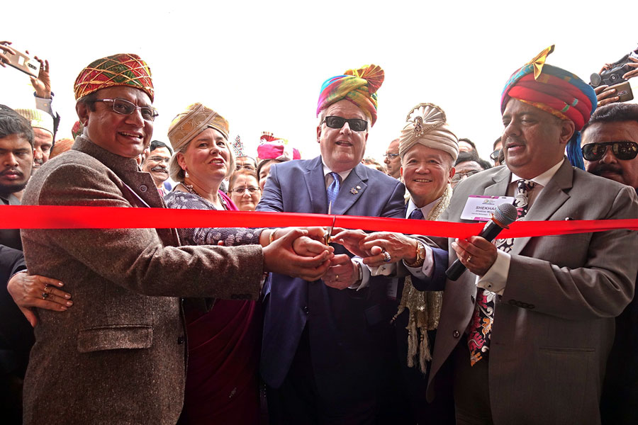 On the inaugural day, following a nicely done interfaith service, leading a grand march, RI President Mark Maloney inaugurated the House of Friendship, headed by PDG V Raja Sreenivasan, in a colourful ceremony with music, dance, and all the senior Indian and international leaders dressed in colourful, traditional Indian pagdis.