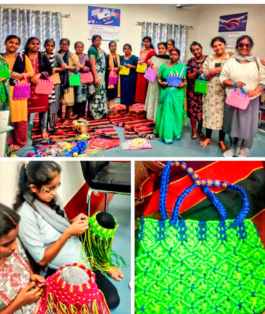 One aspect that is troubling her is the status of women, and the disturbing fact that even educated women from rich families are not allowed by their men to work outside the house, “which causes them a lot of frustration. The women of Anekal come from a very conservative background. They get married when they are in high school and most of them are housewives, and are very happy with the training we give them to work at home — making bags, doing ari work, crochet, etc and market their products locally within their own circles. Some of them want to start beauty parlours and are looking for support,” she adds.
