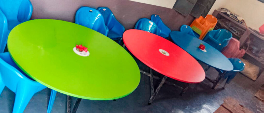 Nali-Kali tables are specialised, round or modular furniture used in Karnataka government schools, and are specifically designed to support the Nali-Kali (joyful learning) activity-based teaching system. They facilitate small-group learning, encouraging collaboration, self-paced learning, and social skills instead of traditional lecture-style seating.