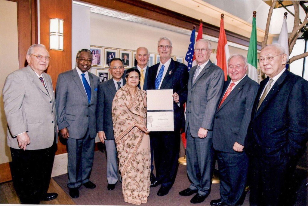 When he was RI Director in 1988–90, he came to India to attend District 308 conference in Ambala in Feb 1989. Usha and I met Jon and his wife Ade when they visited Chandigarh. He saw the “Open Hand Monument,” a symbolic structure which symbolises “the hand to give and the hand to take, peace and prosperity and the unity of mankind”. When I became RI President my theme was “Look Beyond Yourself”. Then Jon laughed that he would have a theme on “hands”. Thereafter, he became RI President and chose the theme “Lend a Hand,” where two hands are on the same level and the person receiving is in equal standing with the person giving the aid.