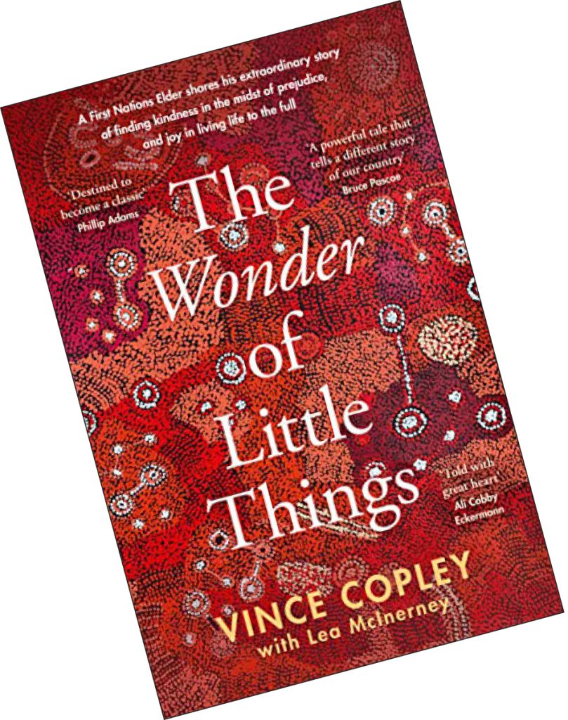 But the book that really fascinates is The Wonder of Little Things by Vince Copley, written with his friend, Lee McInerney. Copley was a champion footballer and respected coach, and was committed to improving the lives of his people. The design of the cover clearly establishes the book’s Aboriginal connections with its fine-dotted design. We are familiar with White Australia’s uncomfortable relationship with the Aboriginals, the original inhabitants of that vast continent, and indeed, they were largely invisible in the small parts of Sydney and Cairns that we visited. Copley’s story, based on his experiences growing up nontraditional Aboriginal, is not a litany of woes; it is, as the title suggests, a true account of “hardship, courage and optimism, told without self-pity”. Laconic and gently humorous by turns, Copley opens our eyes to ways of living that privileged folk anywhere in the world could never imagine, even as it helps us connect the dots with the lives of indigenous people everywhere.