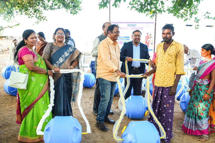 Having read and heard about the transformation water wheels have brought for the rural women in the drought prone Vidarbha-Marathwada regions of Maharashtra, Narasimha Medha Kotaru, president, RC Global Champions, RID 3150, set about the task of donating rolling plastic drums to tribal women in remote Telangana villages to ease their burden of fetching water.