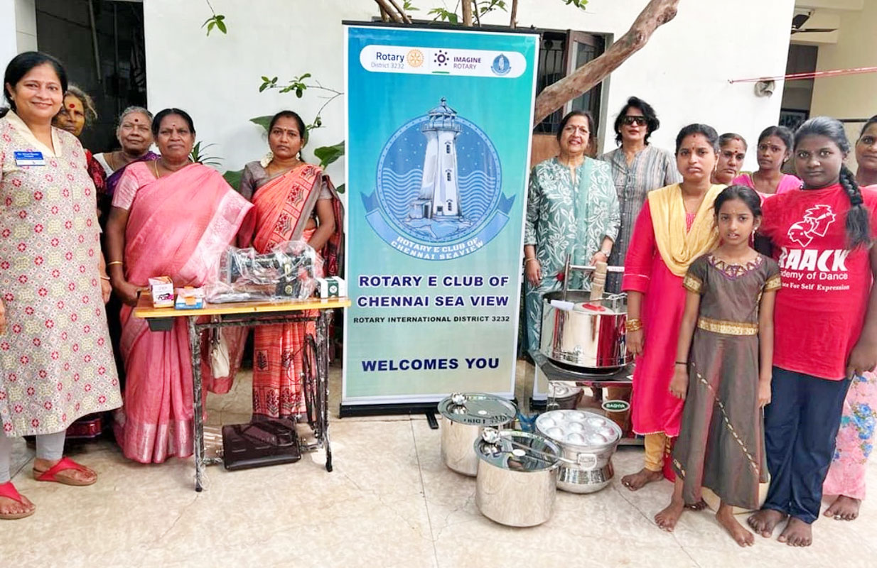 A commercial wet grinder, along with a large idli cooker, vessels and groceries, and a motorised sewing machine was gifted by the club to the Annai Bharata Matha Self Help Group located in a slum. “This will help the women earn a decent sum either by pursuing tailoring as a vocation or establishing an eatery,” said club president Shivani Khemka.