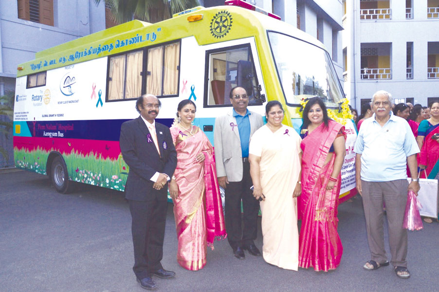 Rotary Club of Madras East, RI District 3230, donated Aarogyam Bus, a mobile cancer screening unit, to an NGO, Penn Nalam, on International Women’s Day. The vehicle costing Rs 45,00,000 would be used by the NGO to reach out to women to sensitise them about early detection of cancer which is vital for effective treatment.