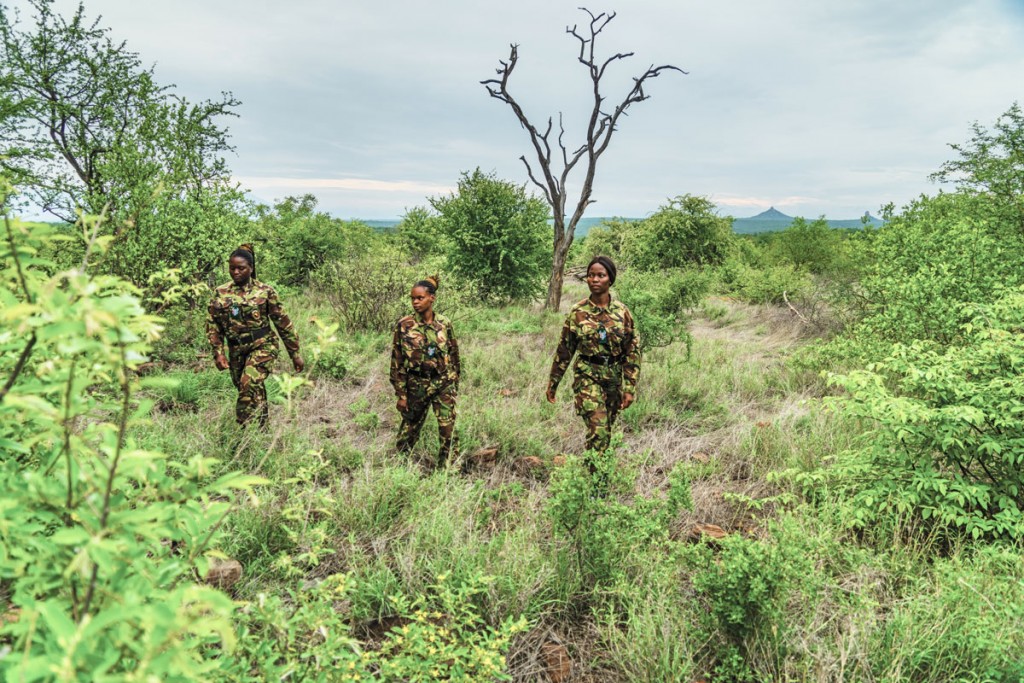 Knowing that the Mambas have played a part in reducing poaching feels “really amazing,” says Tsakane, more so because it’s a job that she says she grew up thinking was “supposed to be done by men.” To this day, many in the conservation industry in South Africa still feel that women have no place in the anti-poaching arena and that conducting unarmed patrols in Big Five areas is foolhardy. “I don’t think men would want to work unarmed in a Big Five area,” says Tsakane with a laugh. “A man would come up with so many reasons why he needs a gun. But for us it’s more about reading the animals’ behaviour. We understand that it’s not really about guns.”