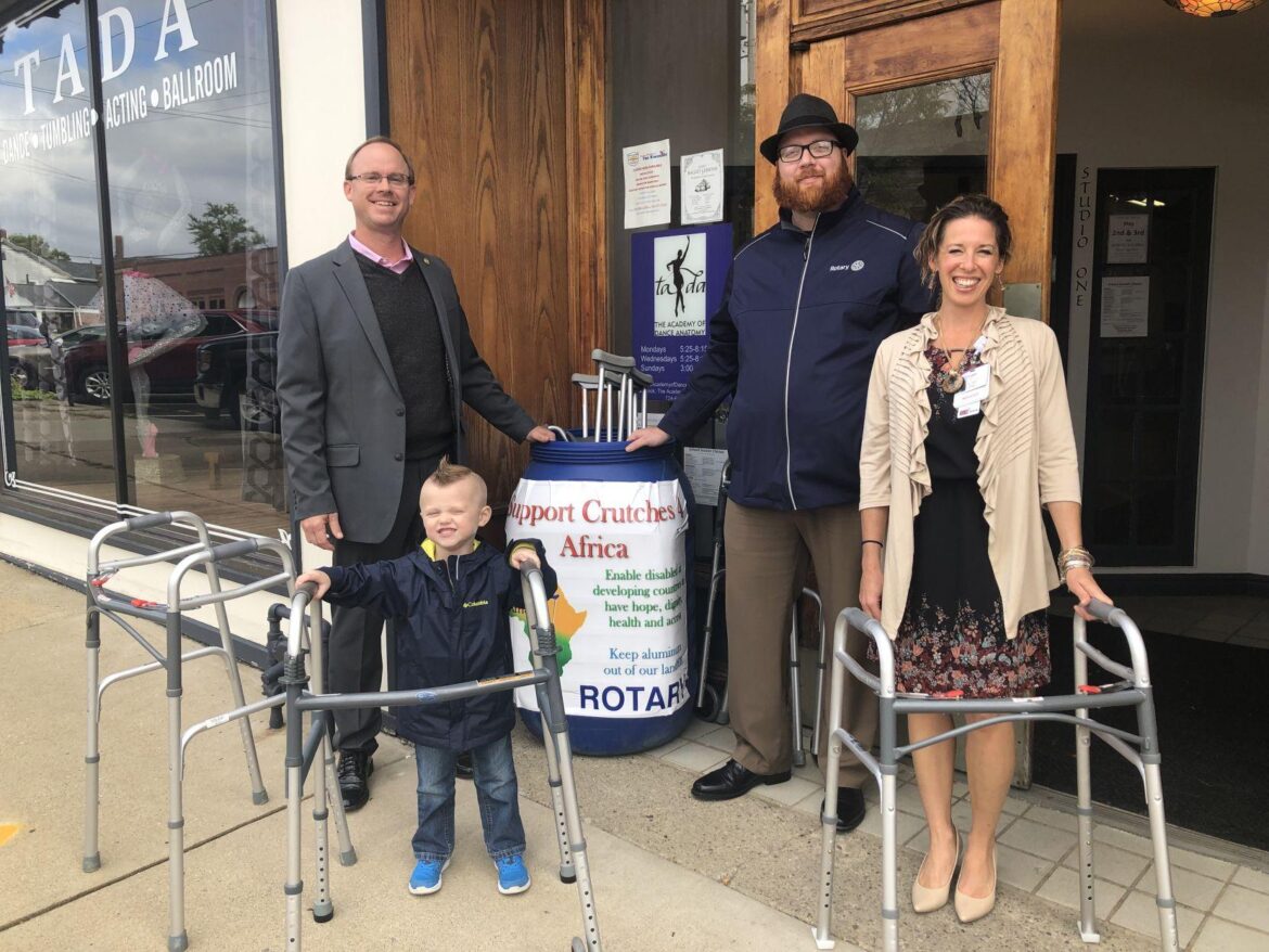 The giant blue bins around Mercer are part of a charity drive, “Crutches for Africa,” sponsored by the Rotary Club…