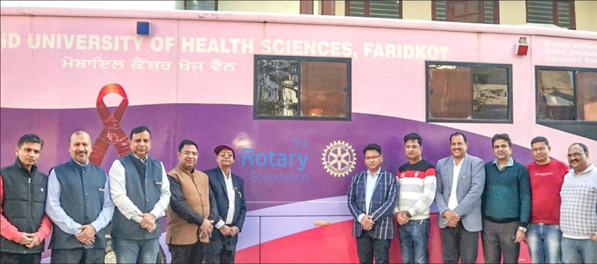 Under a global grant partnership with RC Taipei Tungteh Taiwan, RID 3522, and RC Delhi Rajdhani, RID 3011, RC Faridkot, RID 3090, handed over the Rotary Gunwati Bansal Memorial Cancer Detection Van worth $200,000 to the Baba Farid University of Health Sciences, Faridkot, in 2017–18.